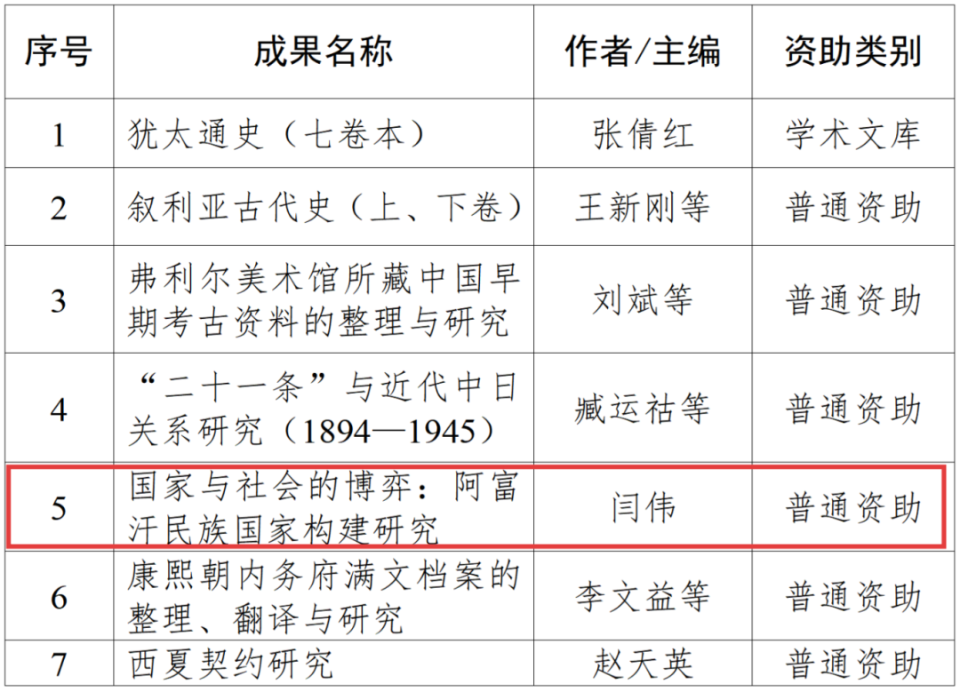 闫伟教授获2025年度中国历史研究院学术出版资助项目资助