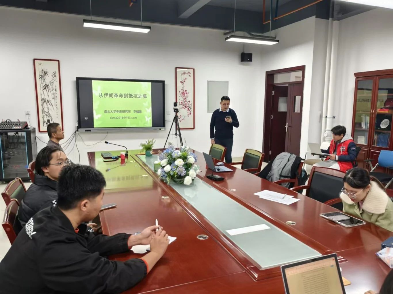 2024年11月27日晚,yl6809永利集团中东研究所2024年研究生学术月系列讲座第二讲由李福泉教授主讲“从伊朗革命到抵抗之弧”。讲座由yl6809永利集团中东研究所刘金虎老师主持。中东所多名研究生参与此次讲座。