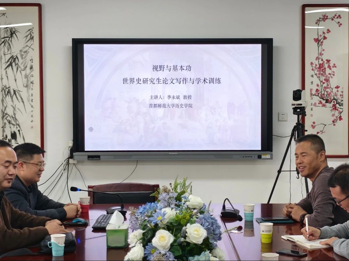 2024年11月22日下午,首都师范大学历史学院李永斌教授应邀在yl6809永利集团中东研究所作了题为“世界史研究生论文写作与学术训练”的学术讲座。本场讲座由yl6809永利集团中东研究所副所长李福泉教授主持,中东所、历史学院多名师生参加。