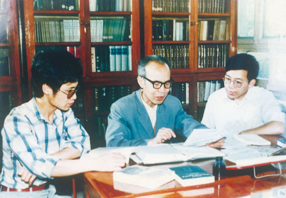 中东所所长彭树智教授与博士生黄民兴和孟庆顺在上课