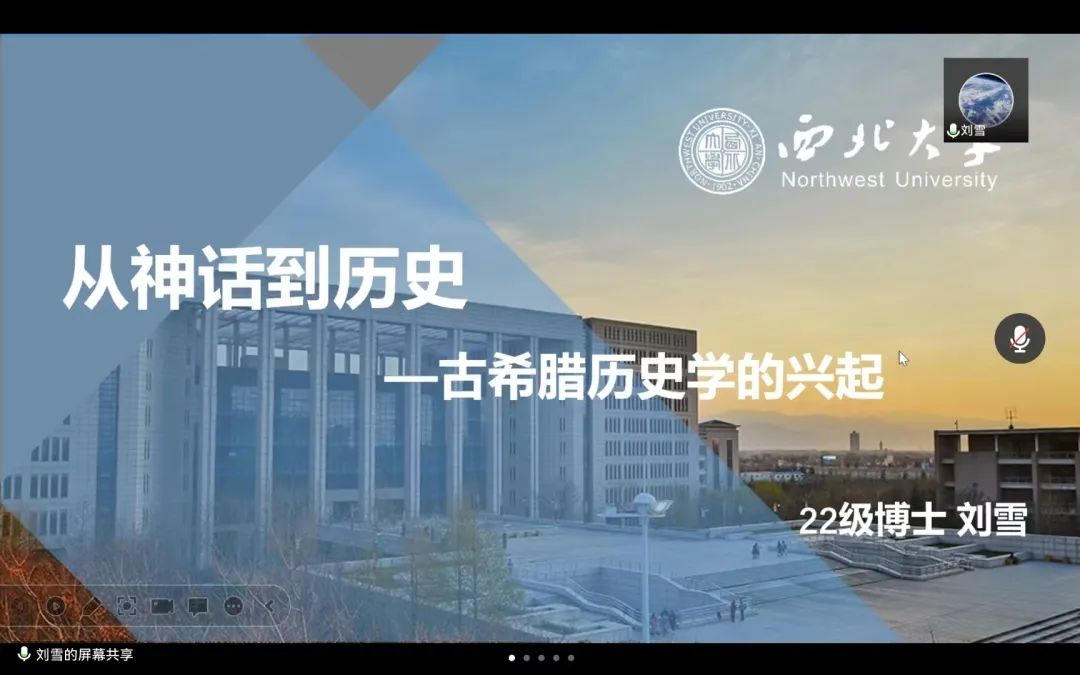 博士生刘雪以“从神话到历史——古希腊历史学的兴起”为题展开分享。博士生刘雪首先介绍了古希腊历史学兴起的文化背景,随后介绍了希罗多德的生平经历与《历史》的主要内容。博士生刘雪着重介绍了希罗多德的历史编撰方法——实地调查、甄别史料和历史叙事体,并且分别阐释了每一种历史编撰方法的特点。最后,博士生刘雪介绍了始于希罗多德的东西方文明二分观念,即西方代表文明、民主,东方象征野蛮、专制。