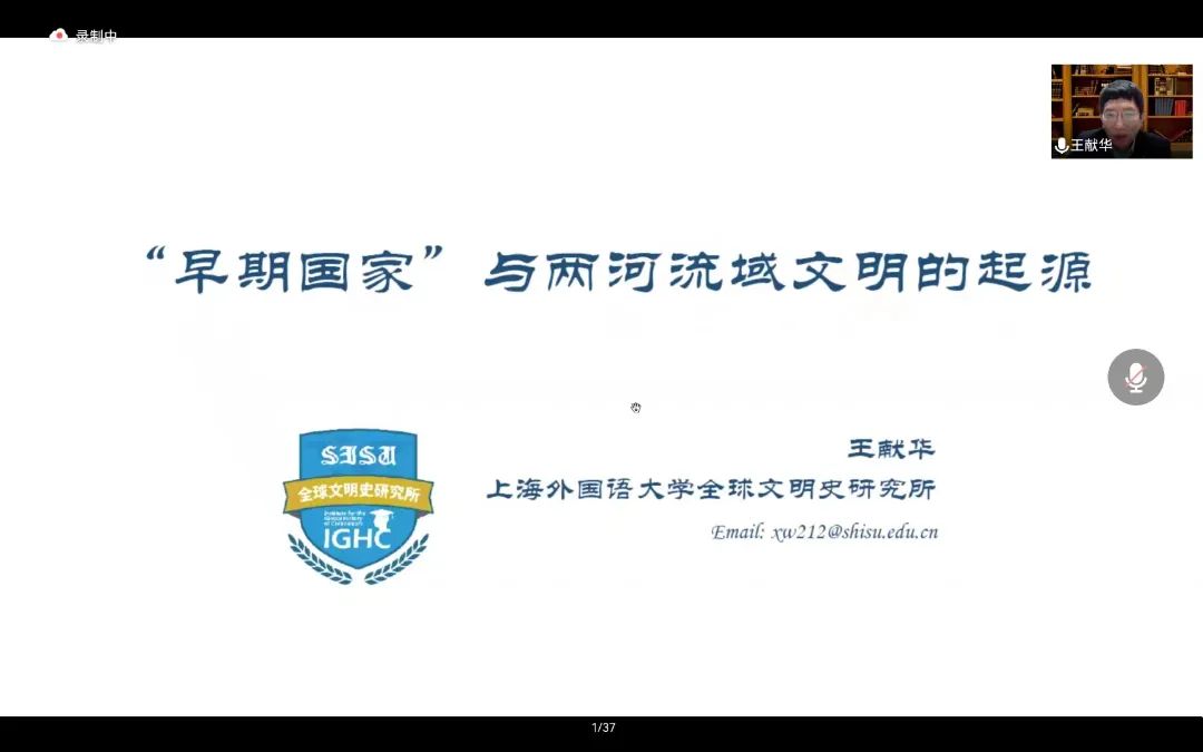 讲座结束后,韩志斌教授和王新刚教授对王献华教授的讲座内容进行了高度评价。在问答环节,王献华教授表明,区分进化论语境下国家与文明的最终关怀,是通过认识两河流域文明的文明逻辑来理解中华文明。除了二者的差异,更应该关注长时段中二者的相似之处,两种文明都应该借用“力量场”概念进入文明内部来理解自身,而不是简单借用欧洲发明出的帝国概念。在王献华教授接连回答了线上听众的问题后,讲座在现场热烈的掌声中圆满结束。
