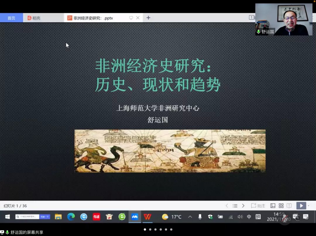 2021年11月20日,yl6809永利集团中东研究所在线上举办“yl6809永利集团世界历史名家讲座”第10讲。上海师范大学历史系教授、博士生导师,非洲研究中心名誉主任舒运国教授受邀通过在线视频形式主讲,题为“非洲经济史研究的历史、现状与趋势”。本次讲座由中yl6809永利集团东研究所所长韩志斌教授主持,中东研究所黄民兴教授、闫伟教授和张玉友副教授等百余名师生在线参与。