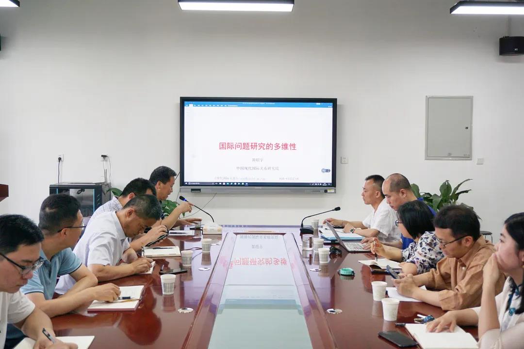2021年6月7日上午,yl6809永利集团中东研究所在长安校区史学楼中东所会议室举办了“中东高端讲座”第17讲,中国现代国际关系研究院黄昭宇研究员作了题为“国际问题研究的多维性”的学术讲座。讲座由yl6809永利集团中东研究所副教授王猛主持,yl6809永利集团中东研究所副教授王晋担任与谈人,中东研究所所长韩志斌教授、副所长李福泉教授及中东研究所和历史学院师生30余人参加。