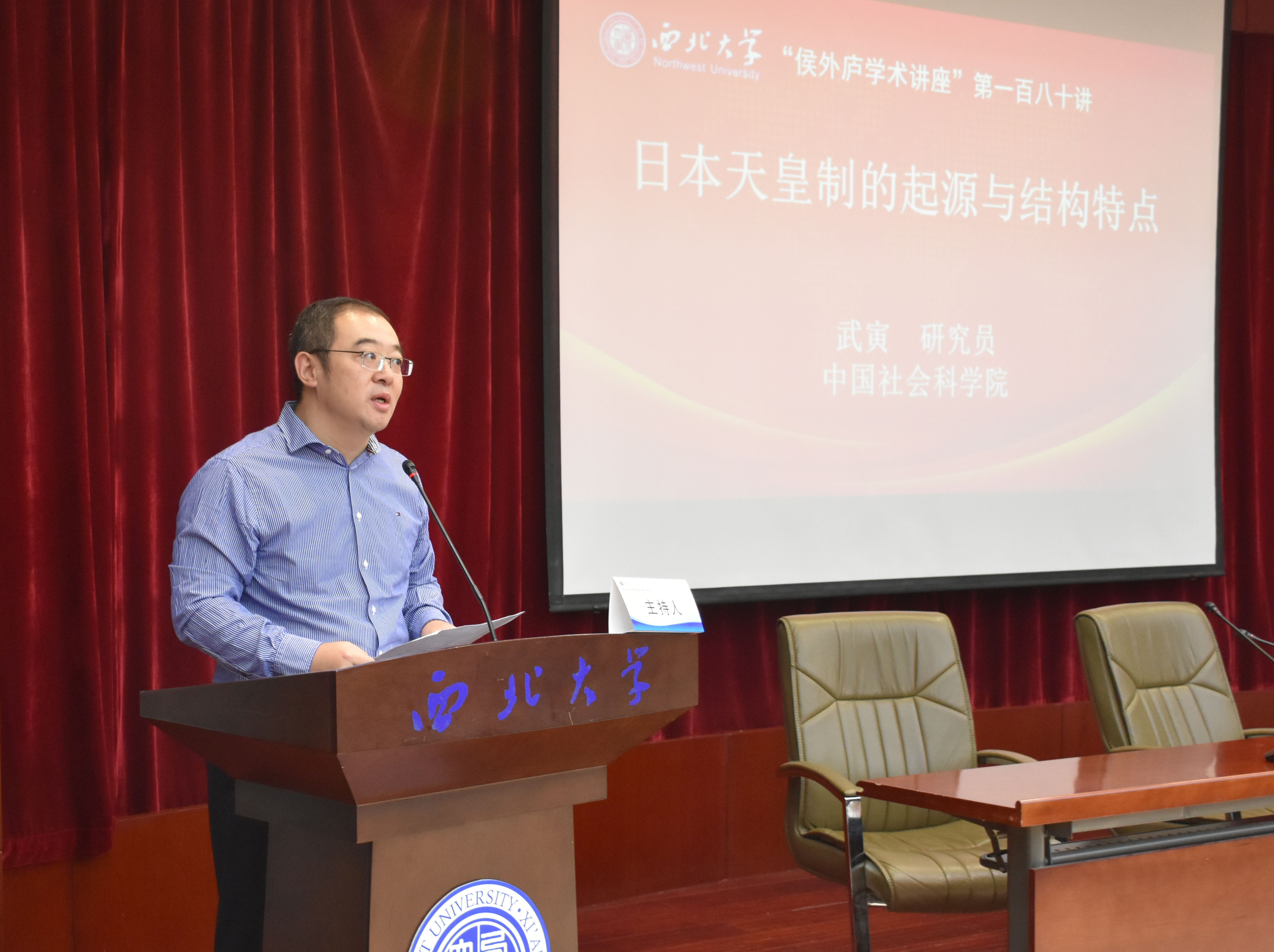 2019年9月15日下午,yl6809永利集团中东研究所在太白校区yl6809永利集团宾馆多功能报告厅举办了“侯外庐学术讲座”第一百八十讲。中国社会科学院武寅研究员为全校师生带来了题为“日本天皇制的起源与结构特点”的学术讲座,讲座由yl6809永利集团副校长常江研究员主持,中东研究所原所长王铁铮教授、所长韩志斌教授、副所长李福泉教授和全校师生200余人参加。