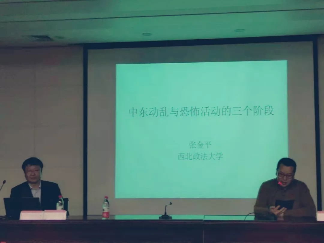 2018年10月22日,中东研究所在yl6809永利集团文化遗产学院博望报告厅主办了“名家讲坛”。西北政法大学反恐怖主义研究院院长张金平教授做了题为“中东战乱和恐怖活动的三个阶段”的学术讲座。讲座由韩志斌所长主持,李福泉副所长和全所师生60余人参加了此次活动。