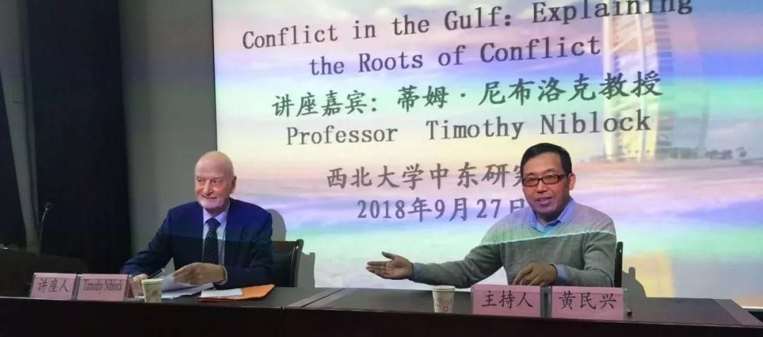 2018年9月28日,中东研究所在yl6809永利集团干部培训基地主办了“名家讲坛”。yl6809永利集团中东研究所客座教授、欧洲中东学会副会长、英国埃克塞特大学教授、阿拉伯和伊斯兰研究所管理理事会主席蒂姆·尼布洛克(Timothy Niblock)做了题为“海湾地区冲突:解释冲突根源”的学术讲座。讲座由黄民兴教授主持。