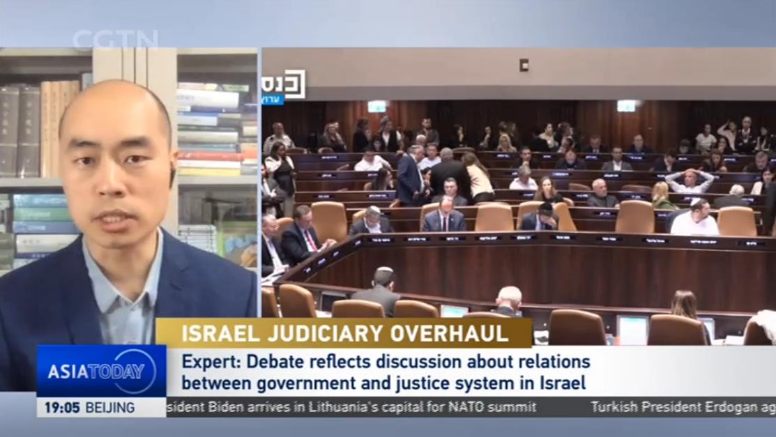 2023年7月11日,中东研究所副教授王晋就以色列司法改革,接受了中央电视台英语频道(CGTN)“环球瞭望”(Global Watch)的采访。