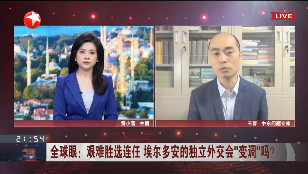 2023年5月29日,中东研究所王晋就土耳其大选,接受了东方卫视“今晚”节目的采访。