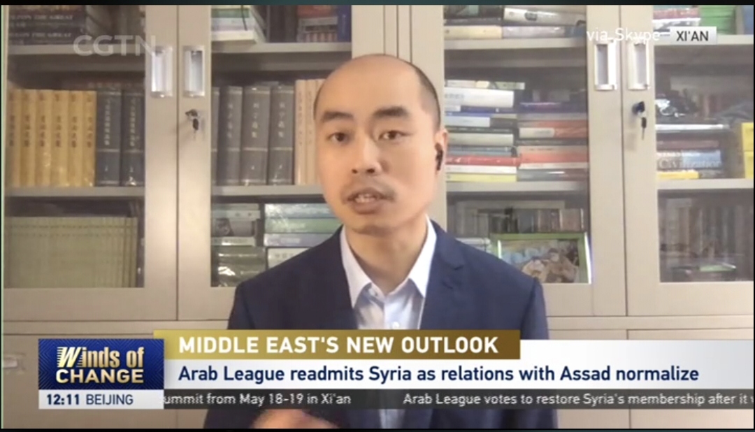 2023年5月8日,中东研究所王晋就叙利亚政府恢复阿拉伯国家联盟成员国资格,接受了中央电视台英语频道“环球瞭望”(Global Watch)的采访。
