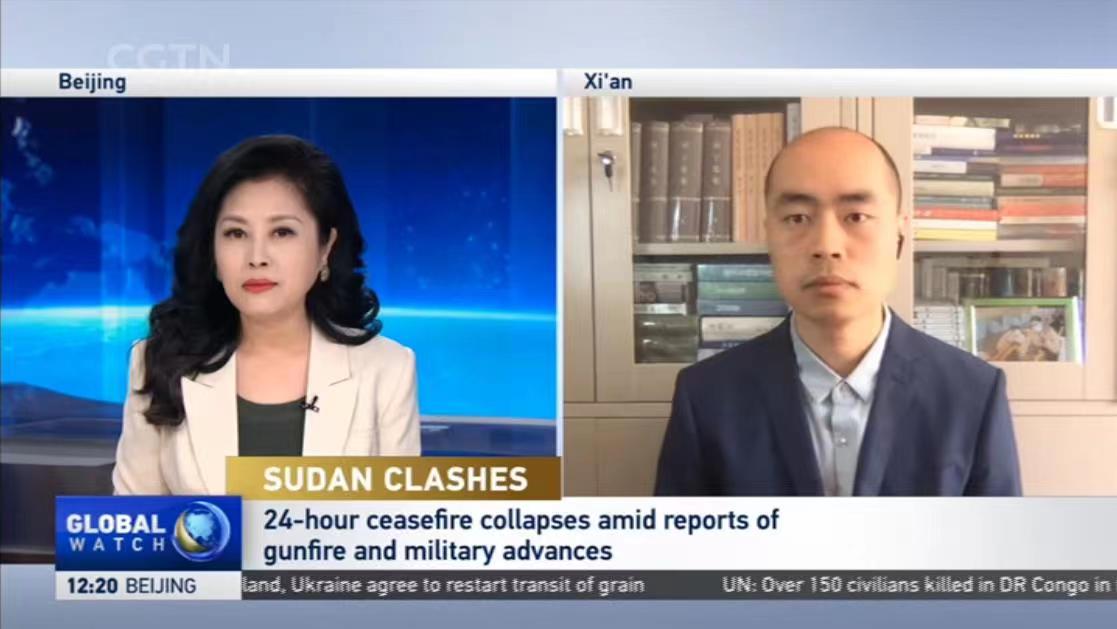 2023年4月19日中东研究所副教授王晋就苏丹冲突,接受了中央电视台英语频道(CGTN)“环球瞭望”(Global Watch)节目的采访。