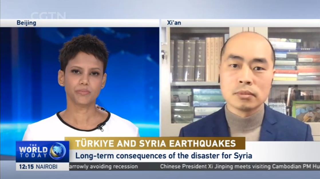 2023年2月10日,中东研究所副教授王晋就叙利亚地震接受了中央电视台英语频道(CGTN)“环球瞭望”的采访。王晋认为,叙利亚面临西方封锁,加之当地冲突造成基础设施损毁,因此救援难度更大,需要国际社会更多关注和援助。