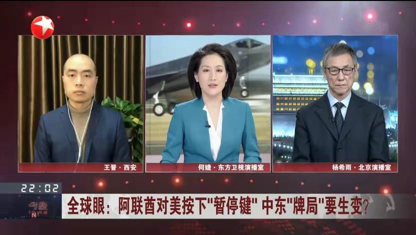 日,中东研究所副教授王晋就阿联酋和美国关系,接受了东方卫视《今晚》节目的采访。王晋认为,阿联酋并非取消了向美国订购
