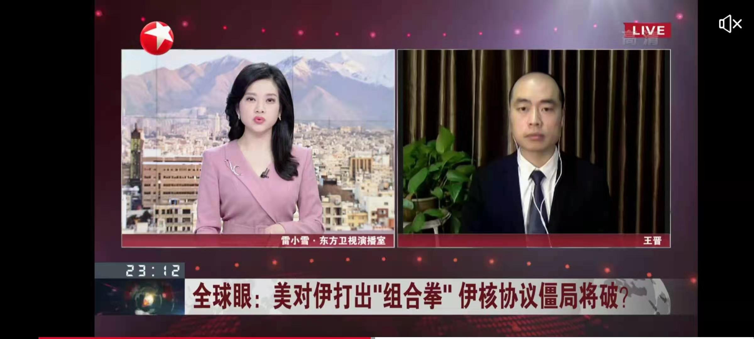 2021年2月19日,王晋副教授就美国伊朗关系,接受了东方卫视《今晚》节目的采访。王晋认为,美国多次表达愿意与伊朗展开对话的意愿,显示出美国拜登政府在伊朗核问题上,不同于特朗普政府的态度和立场。但是美国和伊朗对话,仍然面临诸多挑战;伊朗大选,以及国内强硬派反对声音,都将给美国伊朗对话造成阻碍。