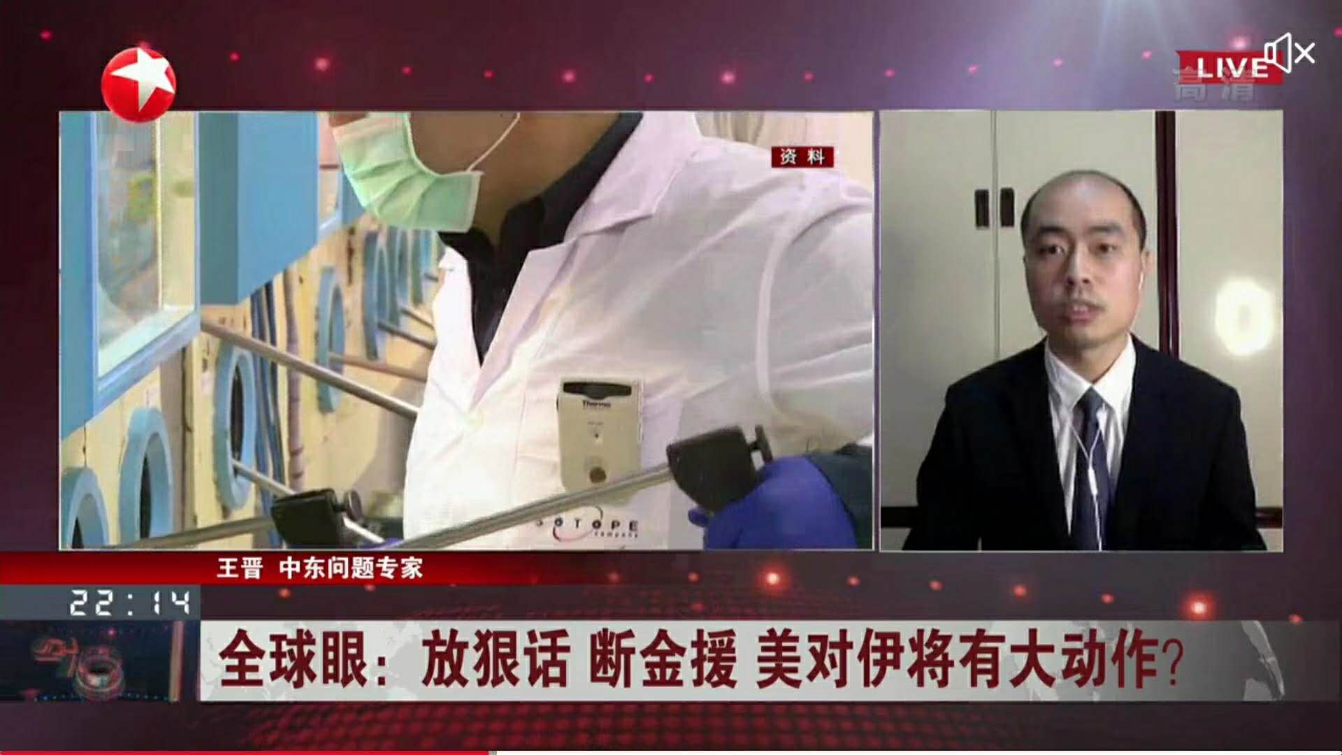 2020年4月22日,中东所副教授王晋博士,就美国和伊朗局势,接受了东方卫视《今晚60分》的采访。王晋指出,美国和伊朗近期相互放狠话,已经成为了两国关系的常态。但是无论是美国还是伊朗,都无力将对方驱逐出波斯湾,都没有意愿与对方全面冲突。美国和伊朗之间的竞争态势仍然将长期持续。王晋认为,美国继续制裁伊朗进口医疗物资,其实对于美国自身安全十分不利。抗击疫情是全世界人民的共同难题,疫情传播不分国籍和种族,只有通力合作才能赢得胜利。美国继续封锁伊朗,不许伊朗进口亟需的医疗设备和药物,实际上损人不利己,必然最后危害美国抗击疫情的努力。