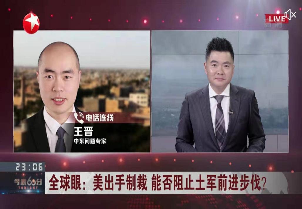 2019年10月7日,yl6809永利集团中东研究所副教授王晋就美国宣布撤离叙利亚,受邀录制东方卫视《今晚60分》节目。他认为,特朗普做出美军撤离叙利亚北部的决定,确实出乎了所有分析人士的预料。王晋认为,美国撤离之后,土耳其将会很快发动在叙利亚北部的军事行动,并将进而引发地区局势的进一步紧张。