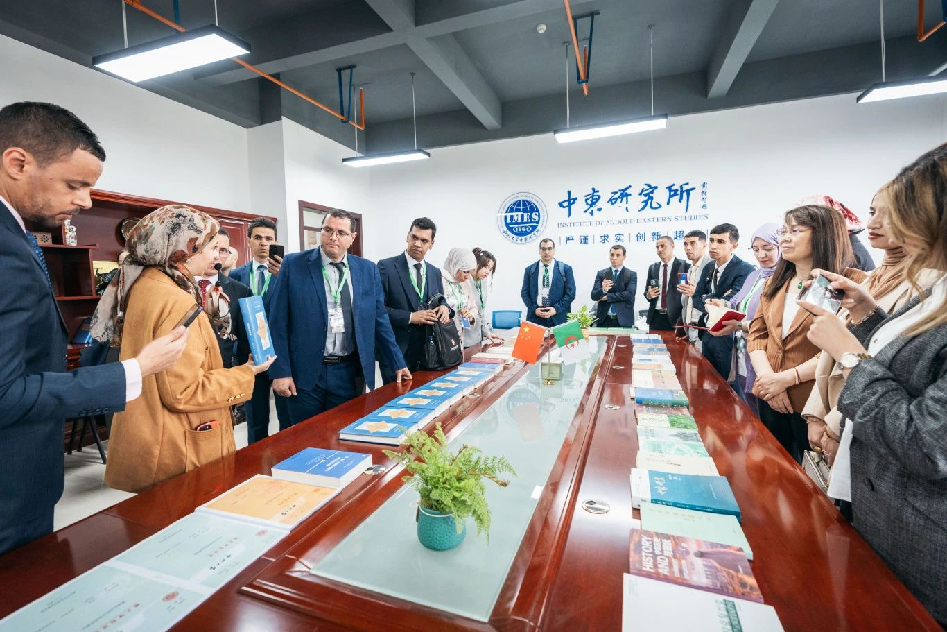 会前,范代娣陪同研修班代表团参观中东研究所图片墙、研究成果以及中外文资料室。