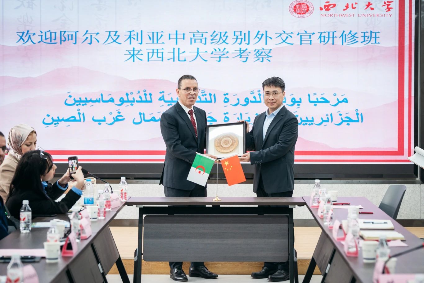 座谈会上,孙庆伟介绍了学校基本情况以及推动开放办学的相关举措和成效。他指出,近年来学校充分发挥在西亚、北非、中亚、南亚等领域的科研优势,深入推进共建“一带一路”教育行动、区域国别研究和高端智库建设,取得了显著成效和丰硕成果。他强调,学校高度重视与阿尔及利亚相关高校、机构的交流合作,依托中非合作论坛、阿尔及利亚研究中心等平台,先后达成多项合作共识,产生了广泛影响。他希望,双方以此次研修班来访为契机,进一步拓展合作领域,携手打造规格定位高、辐射能力广的长效合作平台,更好推动中阿人文交流和民心相通,为中阿命运共同体建设贡献智慧与力量。