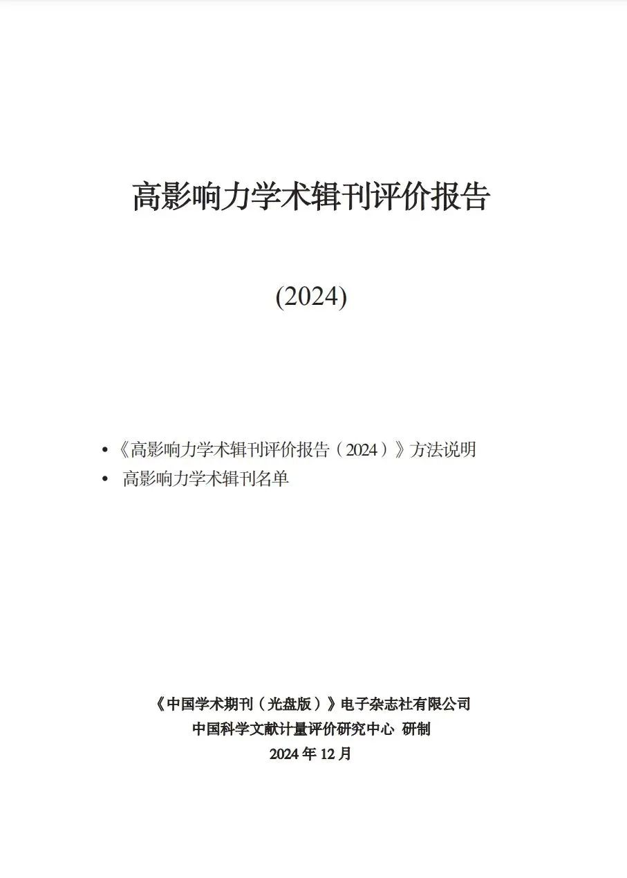 据悉,中国知网收录的辑刊总数为1159种,入选“2024年度高影响力学术辑刊”共166种,分为18个学科领域。本次评选由中国科学文献计量评价研究中心从被引频次和下载频次两个维度和总被引频次、篇均被引频次等六个二级指标进行评价,旨在客观揭示国内学术辑刊的学术影响力,进一步展示辑刊的学术价值,加强研究群体之间的学术互动与合作。