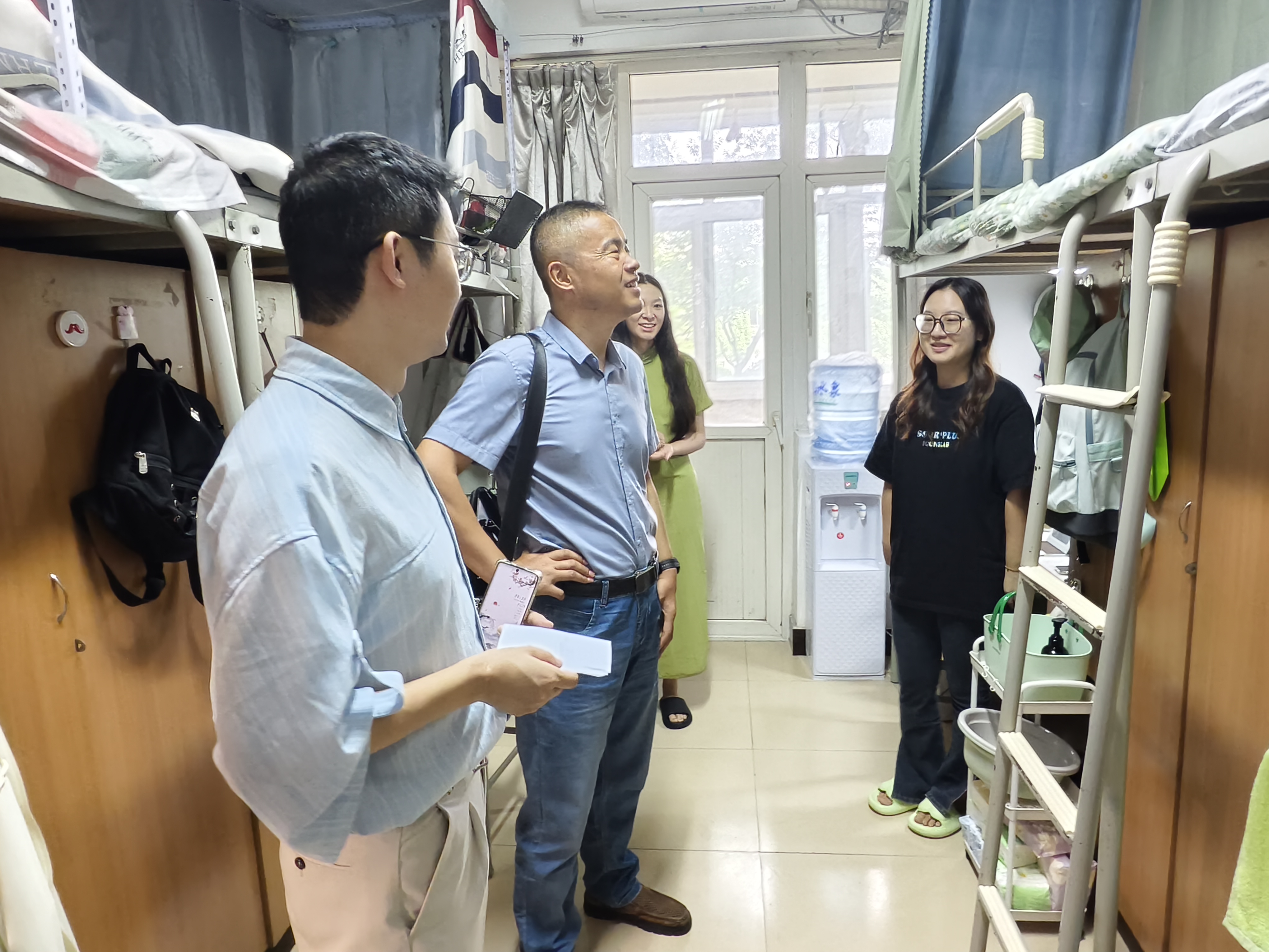 走访过程中,两位老师认真查看了新生宿舍的各项设施设备,询问同学们的到校感受,对同学们的到来表示热烈欢迎。老师们嘱咐新生注意宿舍安全和卫生,提醒同学们遵守宿舍管理规定,注意寝室用电安全,提升消防安全意识。同时希望同学们尽快适应研究生生活节奏,积极融入新的学术氛围,在学习之余也要多参加锻炼,保证身心健康。