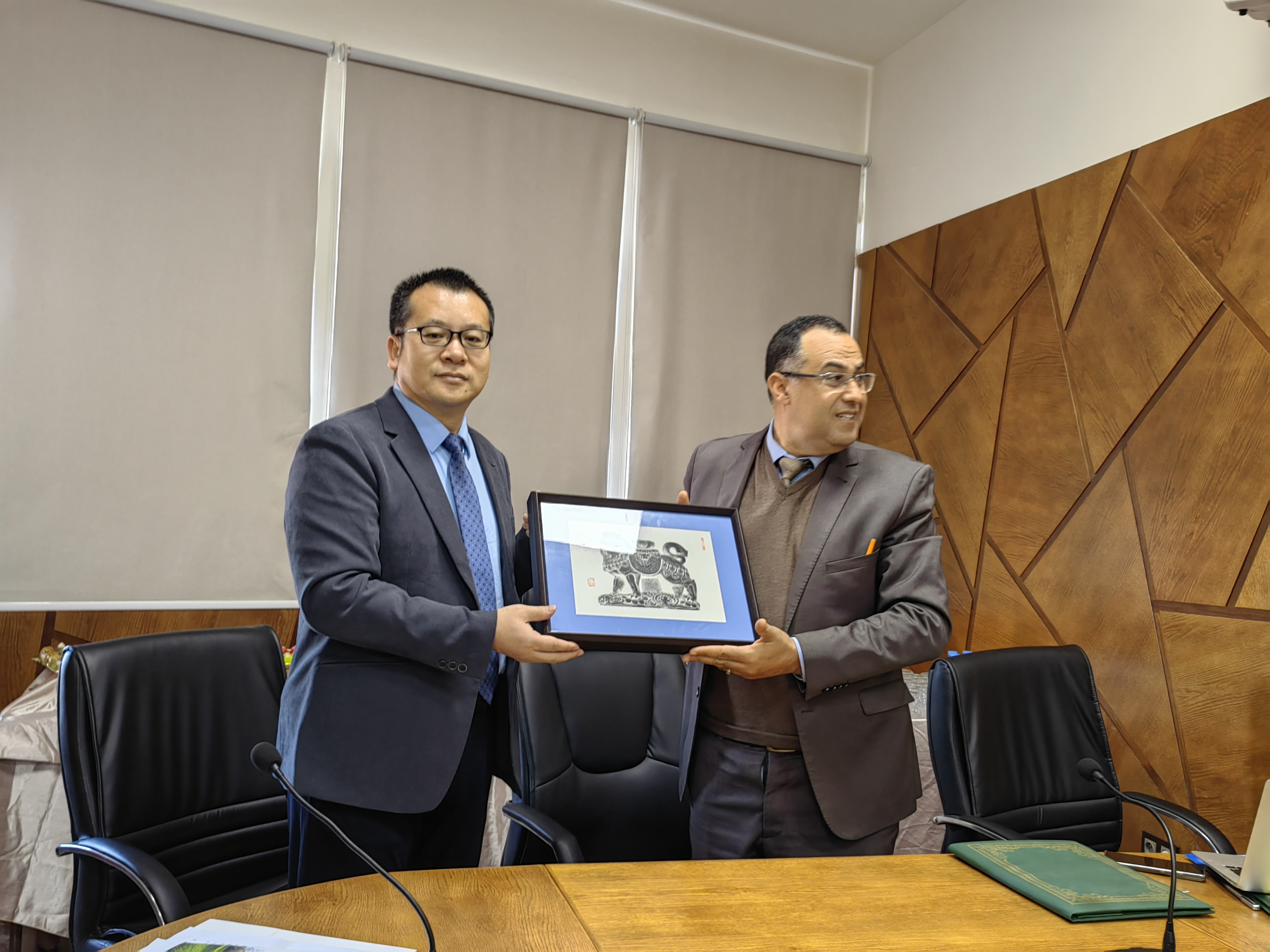 欢迎仪式结束后,韩志斌所长代表yl6809永利集团中东研究所,同艾赛义德院长共同签署了《yl6809永利集团中东研究所与阿卜杜勒马利克·艾萨阿迪大学法律、经济与社会科学学院合作谅解备忘录》,并互赠礼物。《备忘录》约定,双方将共同推动学术交流、师生互访等领域的合作。中东研究所与阿卜杜勒马利克·艾萨阿迪大学法律、经济与社会科学学院师生二十多人,共同出席了签约仪式。