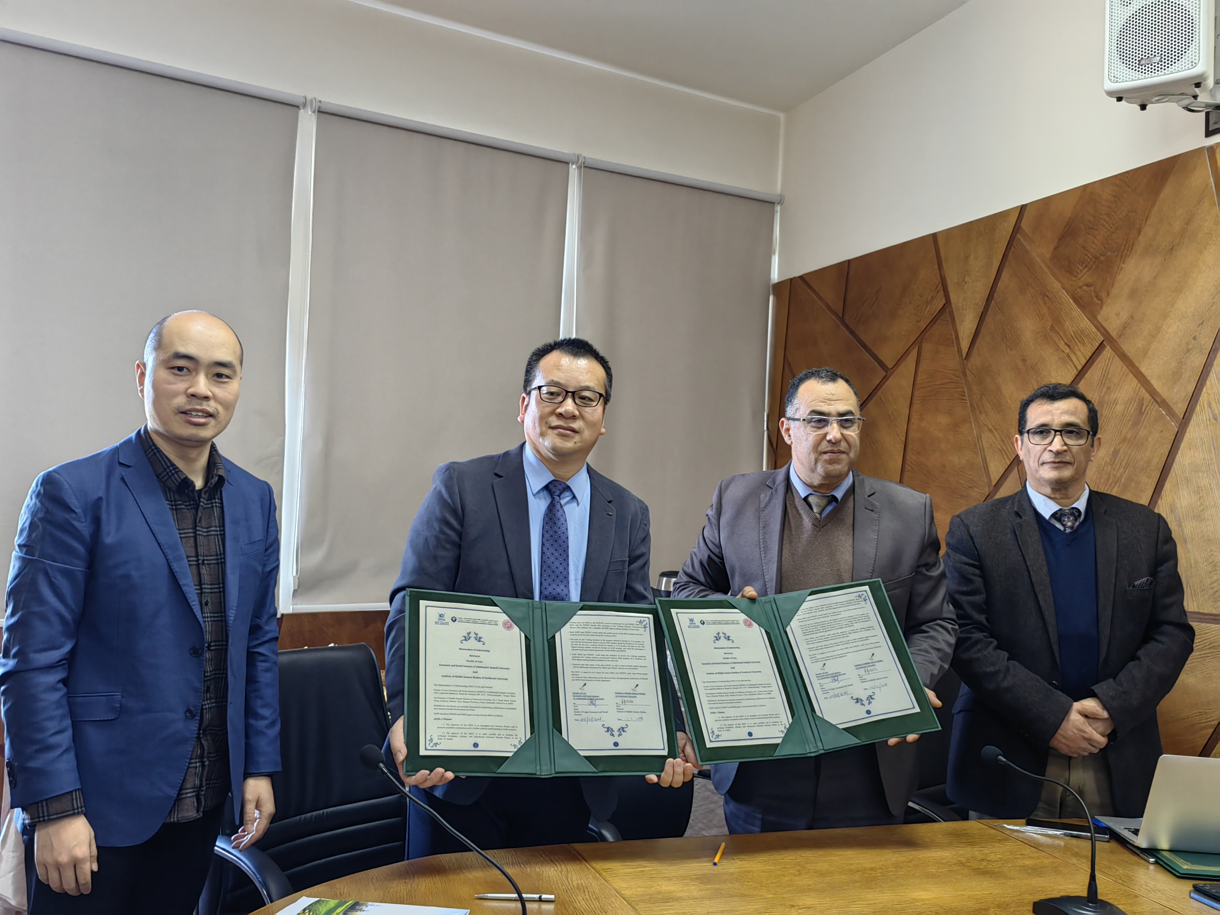 2024年3月4日,yl6809永利集团中东研究所所长韩志斌教授、黄民兴教授、李福泉教授、王猛教授、闫伟教授、王晋副教授和张玉友副教授一行到访摩洛哥阿卜杜勒马利克·艾萨阿迪大学法律、经济与社会科学学院。双方签署了双边合作谅解备忘录,并开展学术交流活动。