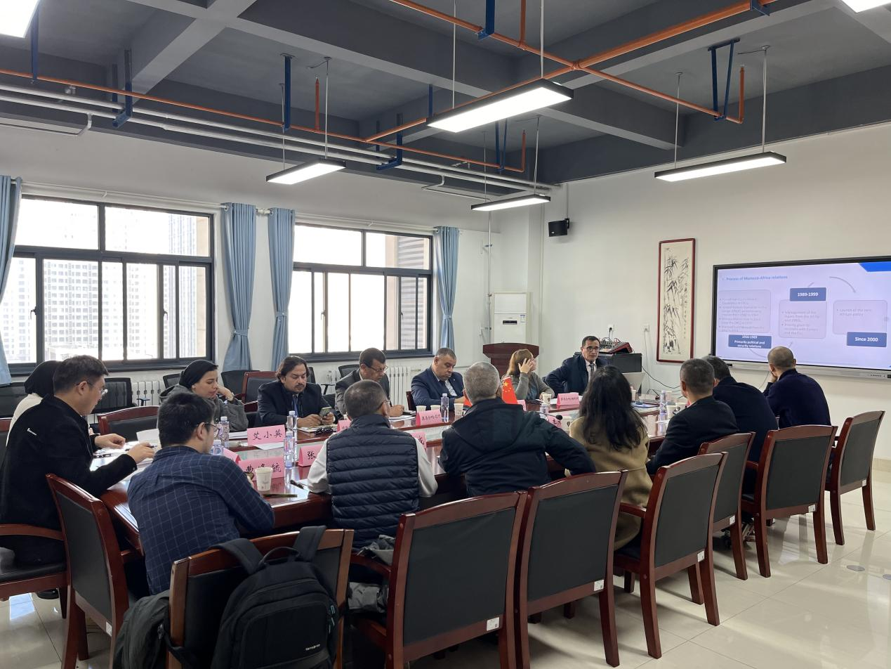 2023年12月4日上午,摩洛哥穆罕默德五世大学副校长奥马尔·哈尼什(Omar Hniche)教授、穆罕默德五世大学法律、经济与社会学院萨莱校区副院长穆斯塔法·马什拉菲(Mustapha Machrafi)教授,穆罕默德五世大学法律、经济与社会学院萨莱校区博士点负责人德里斯·塞非阿尼(Driss Sefiani)教授,穆罕默德五世大学非洲、欧盟—地中海、伊比利亚—美洲研究所萨马尔·哈姆利什(Samar Khamlichi)助理教授,摩洛哥阿卜杜勒-马立克·阿萨迪大学拉希德·侯代圭(Rachid Houdaigui)教授等两所高校5名学者来访yl6809永利集团中东研究所,并与中东所师生进行了座谈与学术交流。