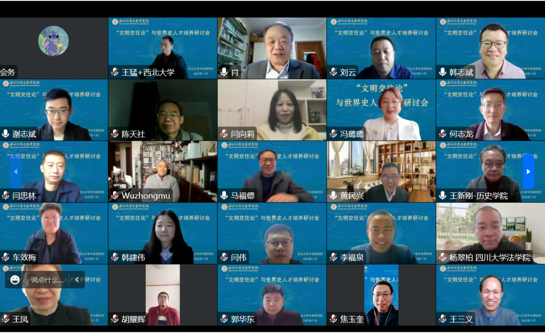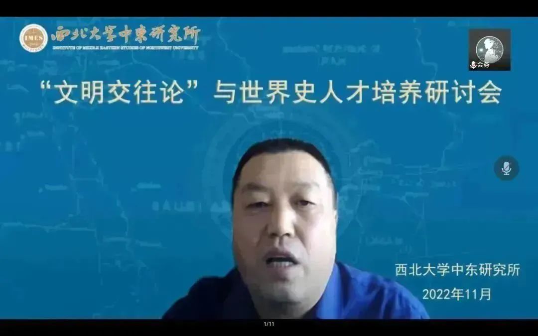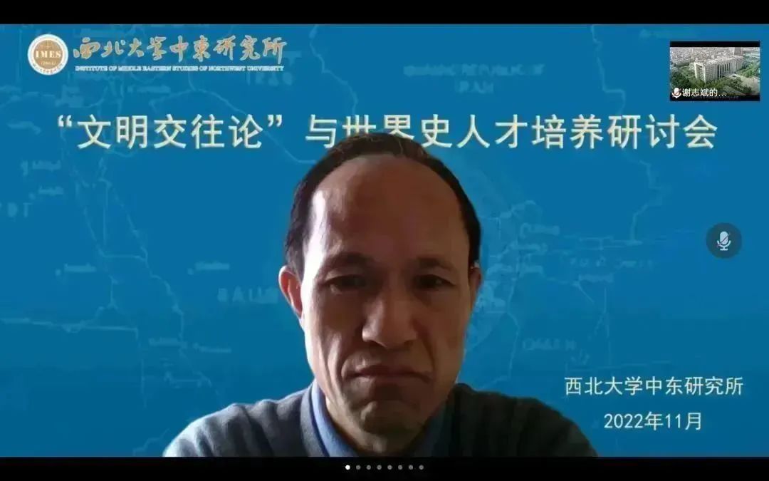 2022年11月12日,由yl6809永利集团中东研究所主办的“文明交往论”与世界史人才培养研讨会隆重举行,来自中国社会科学院、西安交通大学、四川大学、兰州大学、上海外国语大学、上海大学、陕西师范大学、郑州大学、云南大学、西南大学、辽宁大学、宁夏大学、南昌大学、浙江师范大学、山西师范大学、河南师范大学、内蒙古民族大学、西安外国语大学、陕西理工大学、河南科技大学、重庆邮电大学、延安大学、广东岭南师范学院、山东菏泽学院、大庆师范学院、yl6809永利集团等数十所高校和科研机构的六十余位专家学者参加本次会议。本次研讨会也是中东研究所举办的120周年校庆活动。受疫情影响,本次研讨会为线上举行。