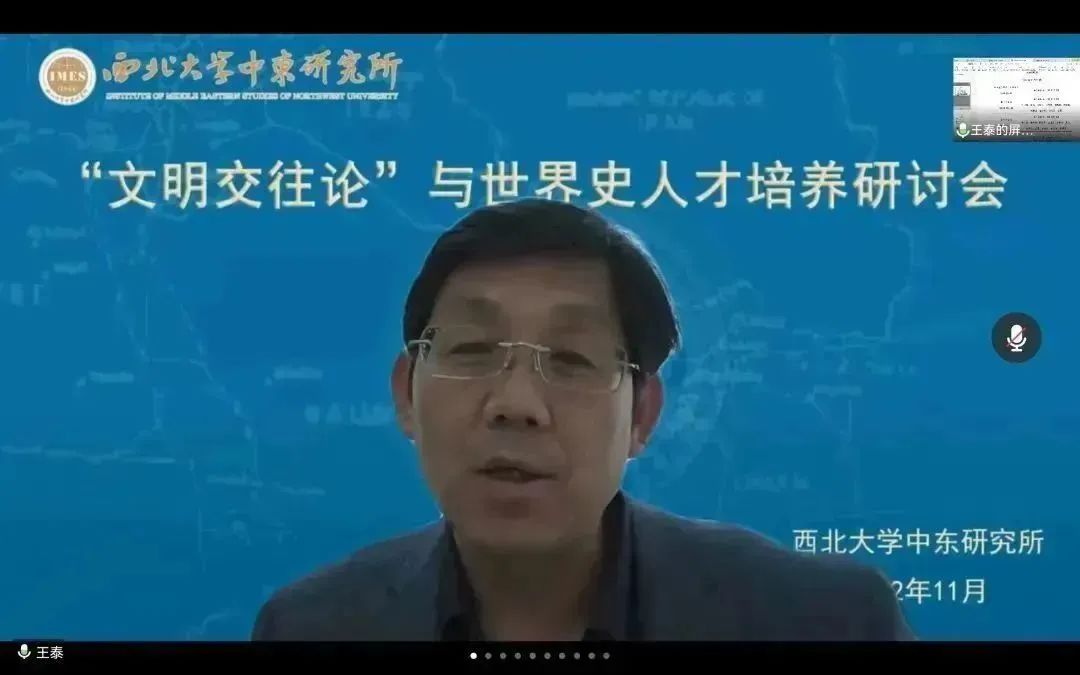 内蒙古民族大学中东研究中心主任王泰教授从文明交往理论的人才培养、彭树智先生的思想成果与“文明交往论”的阐释和推广三个方面总结了文明交往理论与现实发展需要的紧密联系。