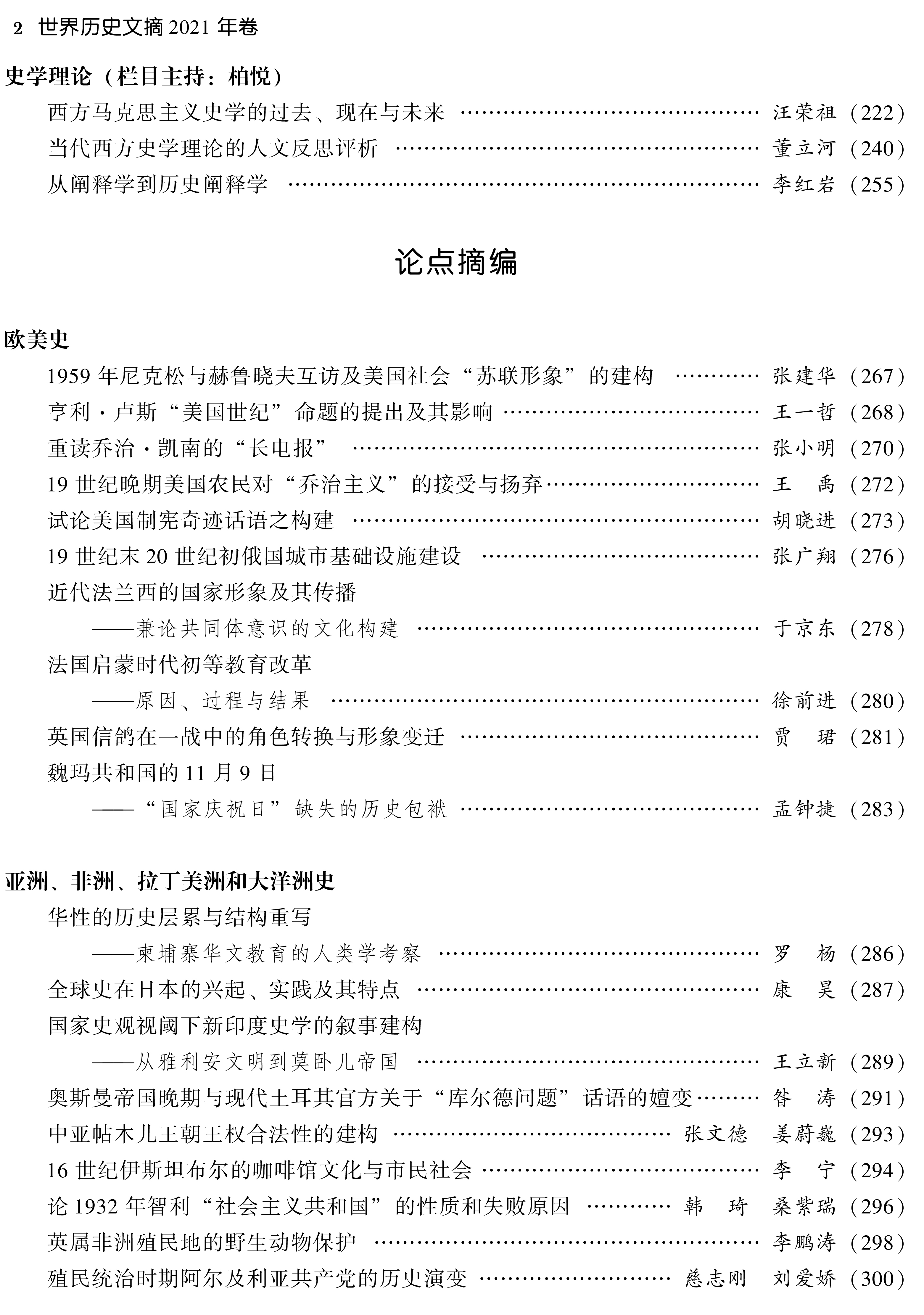 《世界历史文摘》第3期秉承着学术性、客观性、专业性、创新性和现实性,对欧美史,亚洲、非洲、拉丁美洲和大洋洲史,古代中世纪史和史学理论与史学史进行了汇编。