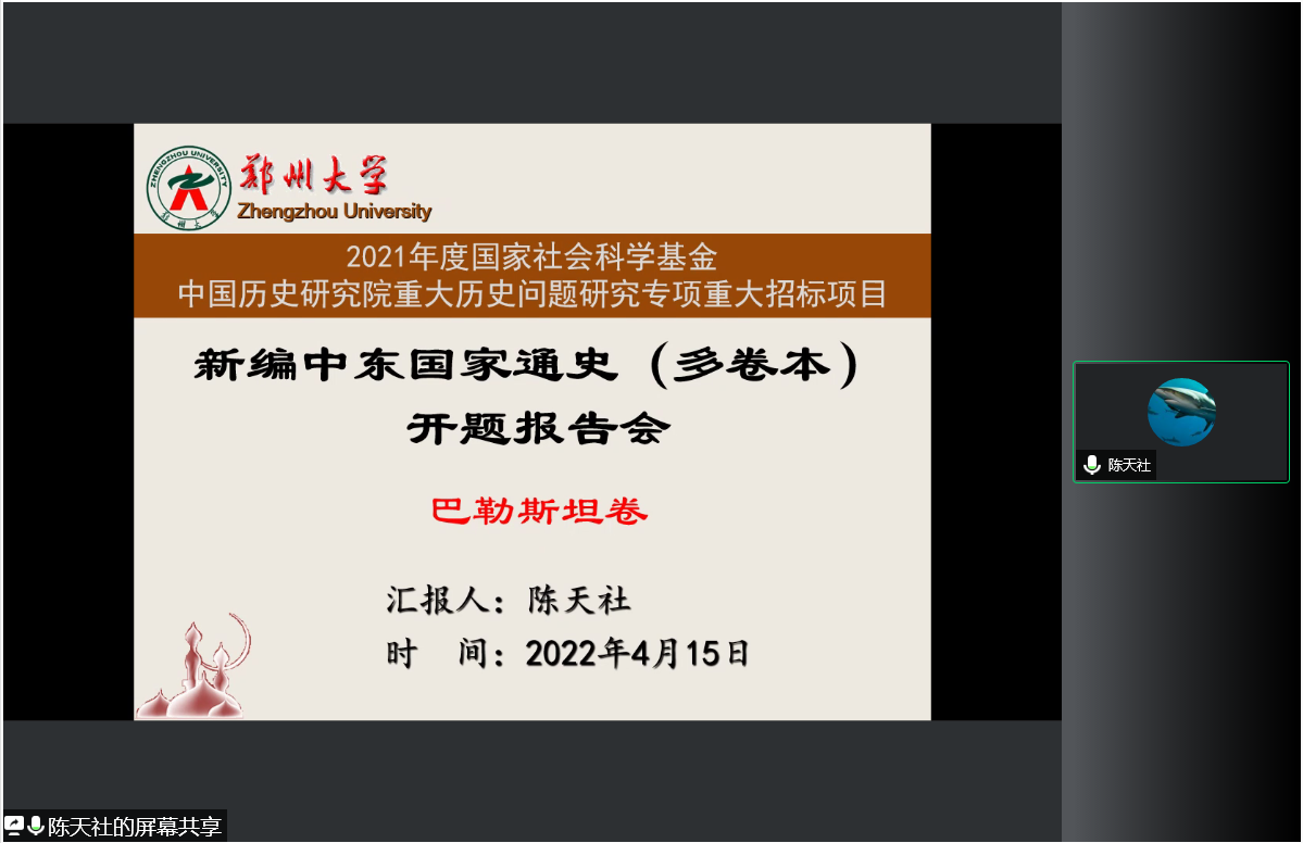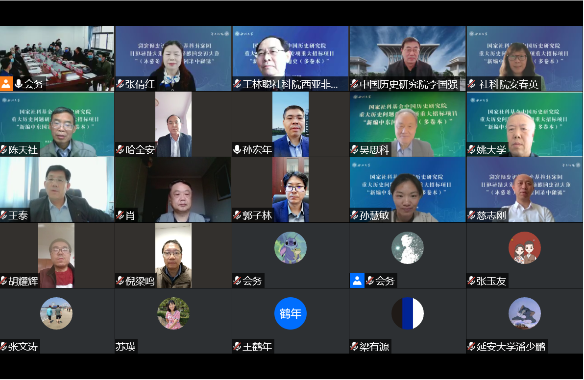 项目首席专家王铁铮教授及项目组成员出席并汇报相关研究计划。出席本次会议的还有中国历史研究院科研规划处处长郭子林研究员、云南大学原副校长肖宪教授、陕西师范大学历史文化学院何志龙教授、陕西省委宣传部理论处国家社科基金重大项目主管王志伟、yl6809永利集团社科处处长马朝琦教授、yl6809永利集团发展规划与学科建设处处长汪涛研究员、yl6809永利集团中东研究所原所长黄民兴教授、yl6809永利集团叙利亚研究中心主任王新刚教授、yl6809永利集团中东研究所所长韩志斌教授、yl6809永利集团社会处副处长李丰庆等。会议采用线上线下相结合的方式进行。