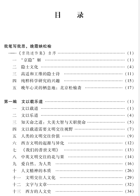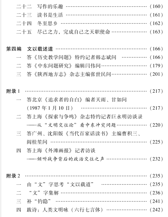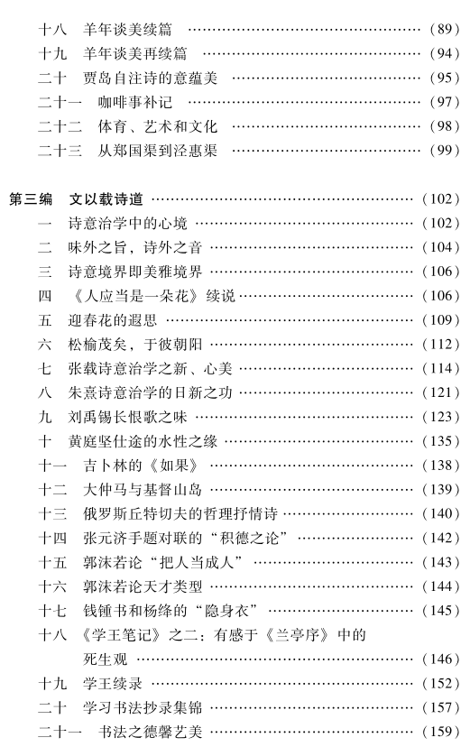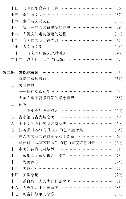 第一卷《文以载道》共分为四编,从“文以载乐道”“文以载美道”“文以载诗道”“文以载述道”等方面,对于人文研究与文明交往,人文研究中的美学,人文研究的诗意,以及彭先生对于学问和人生的回忆进行了系统探讨。彭先生认为,“文以载道”载的是“人类文明交往自觉之道”。“文”与“道”的理想关系是彼此依存、互交互动的融汇交往关系。他们在交往中融为文道一体,使“文而化之”沿着“文而明之”的文明方向发展。文道一体涵盖了宇宙、世道、人心等文化、文明互融的形式与内容的统一,也会给“文”的“立言”“立功”“立德”以人生价值和开阔全人类的宏观视野。彭先生以文明交往的宏大历史视野诠释文道关系,使人文著述超越了一般意义上的“术”的层面,上升到了传“文明之道”、融“文明之壑”的意义上,对于当前人文学科的发展提出了新的话题。