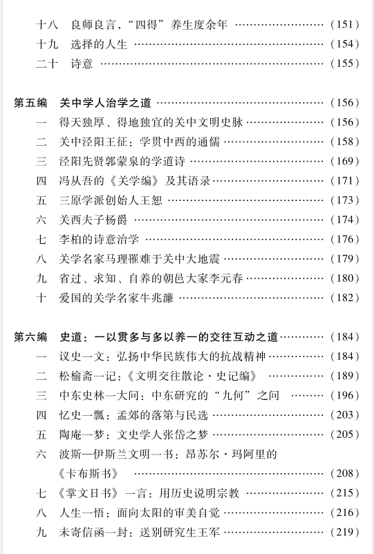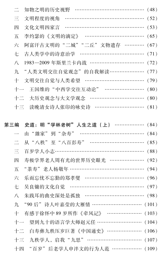 第二卷《史以明道》分别从:“人类文明交往探源”“命人类文明交往‘自觉化’之道”“明‘学林老树’人生之道”“关中学人治学之道”“一以贯多与以多养一的交往互动之道”几个方面系统论述了彭先生的文明交往史论、治史之道、人生之道。彭先生认为,“以史明道”的主旨在于“士志于道”,是珍惜史道中的时间观念,细品人生中的美好,记住历史中的经验,特别是用许多生命换来的教训,从中获得诗意栖息大地的劳作文明交往自觉。同时,也是谈求历史自觉之道。史道不仅博大,而且精深,是追事物发展的客观规律性和人的主观能动性之间的内外联系,从而得出真理。将史学研究超越业的范畴,成为一种探求人类历史发展规律,人生意义之道,进而获得人类文明交往的自觉与人生自觉。事实上,这种“自觉”就是彭先生提出的“三知之明”:即“知物之明”“知人之明”和“自知之明”。