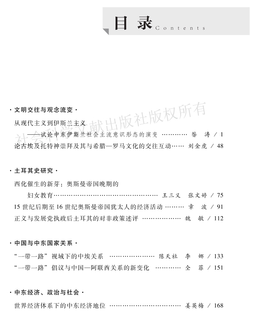 本刊以“历史与现状结合,基础与应用并重”作为办刊主旨,鼓励跨学科研究、学术创新、学术争鸣、学术个性与学派意识。主要刊发关于中东国家的政治、经济、安全形势,中国与中东国家的关系,中东国家对于“一带一路”倡议的参与及其影响的分析研究,栏目设置有中东史研究、中东国际关系、文明史研究、中国与中东关系、区域研究、外论译介、学术史及书评等。《中东研究》不仅为中东研究所提供了学术交流与宣传的媒介,也为我国中东问题研究搭建了一个良好的学术交流平台,同时有助于促进中国中东研究的发展和学术新秀的成长。