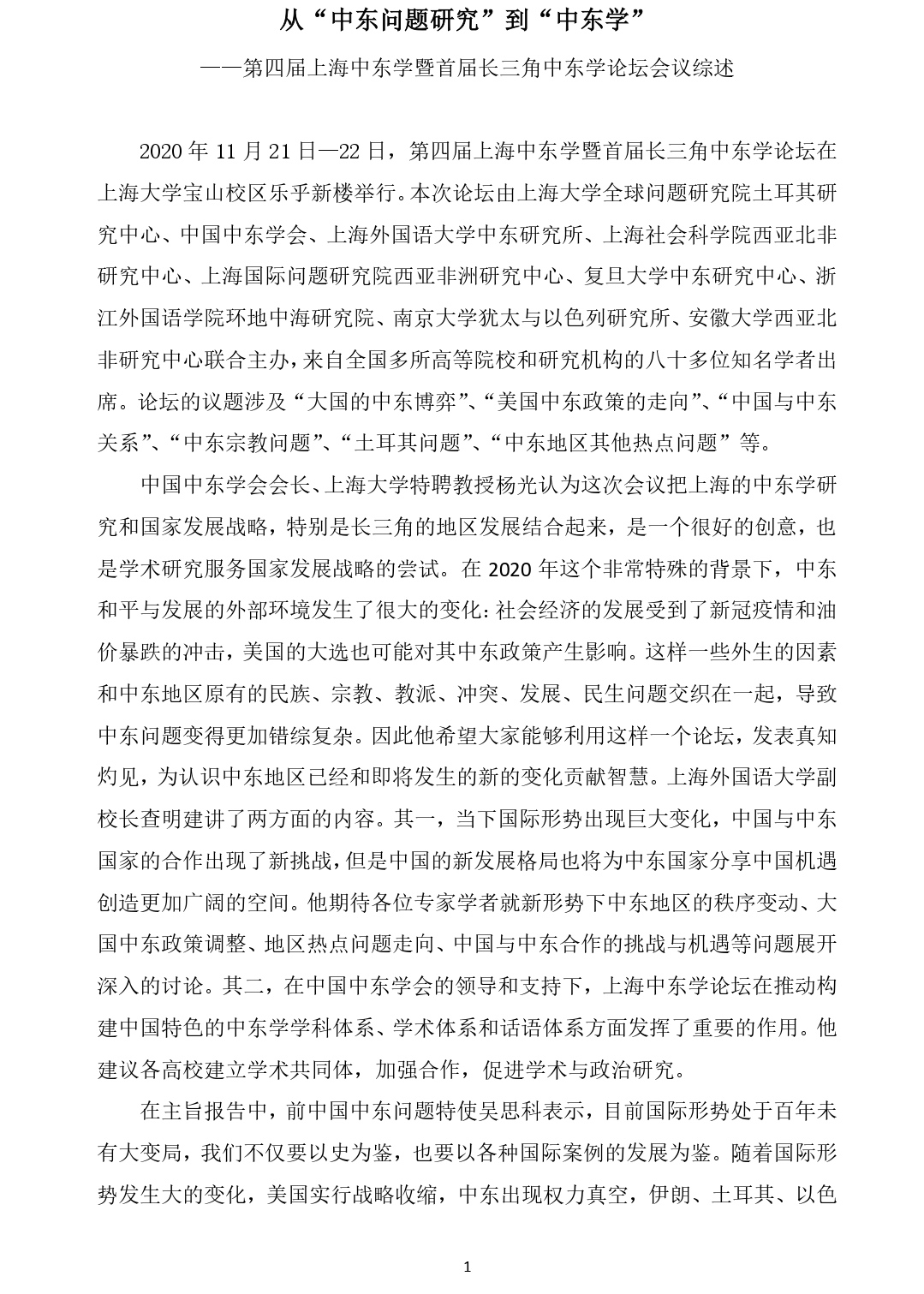 第四届上海中东学暨首届长三角中东学论坛会议综述