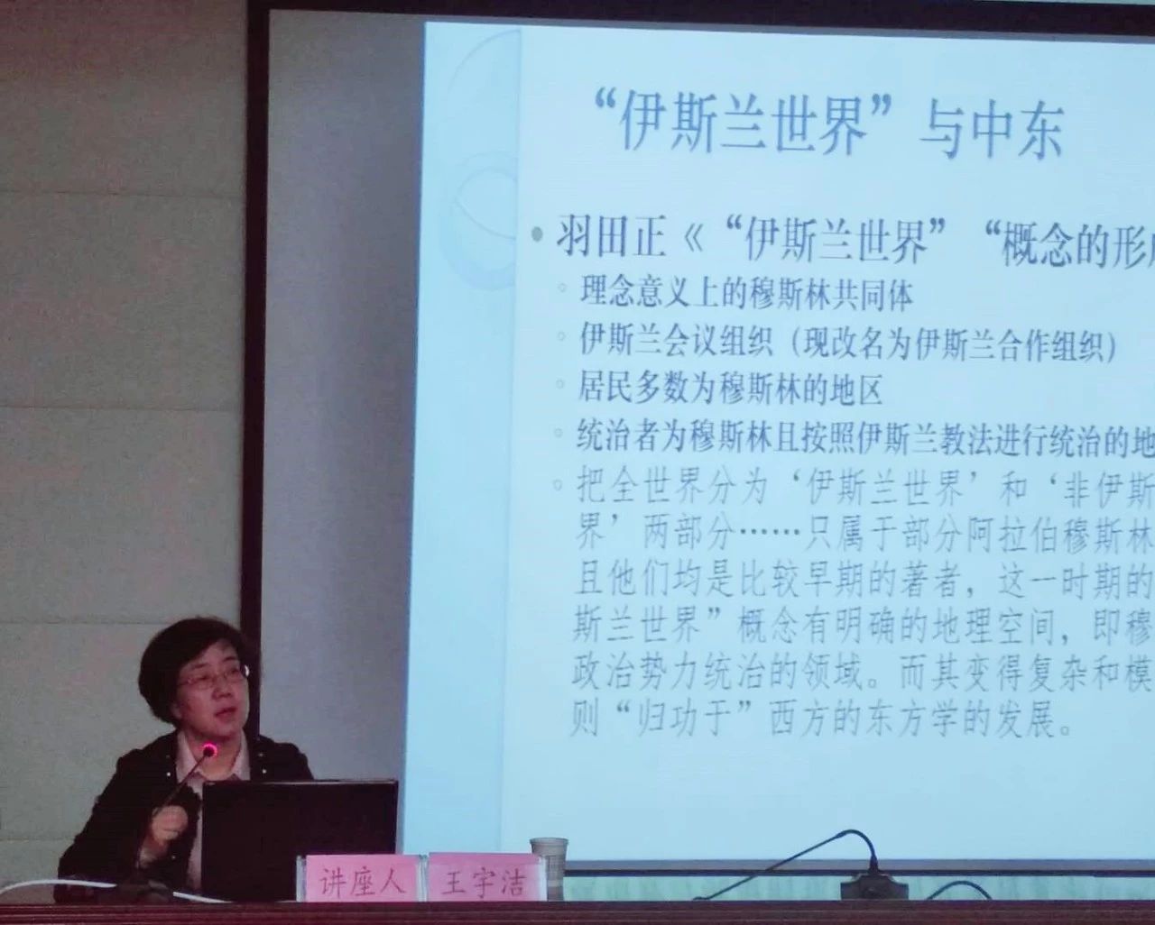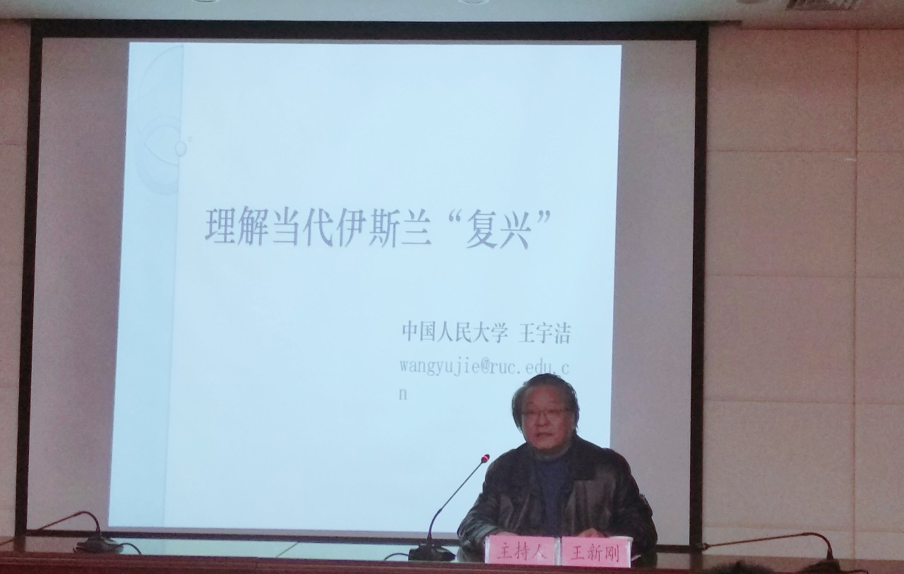 下午,王宇洁教授作了题为“理解当代伊斯兰‘复兴’”的学术报告。报告由叙利亚研究中心主任王新刚教授主持,韩志斌所长和全校师生90余人参加。