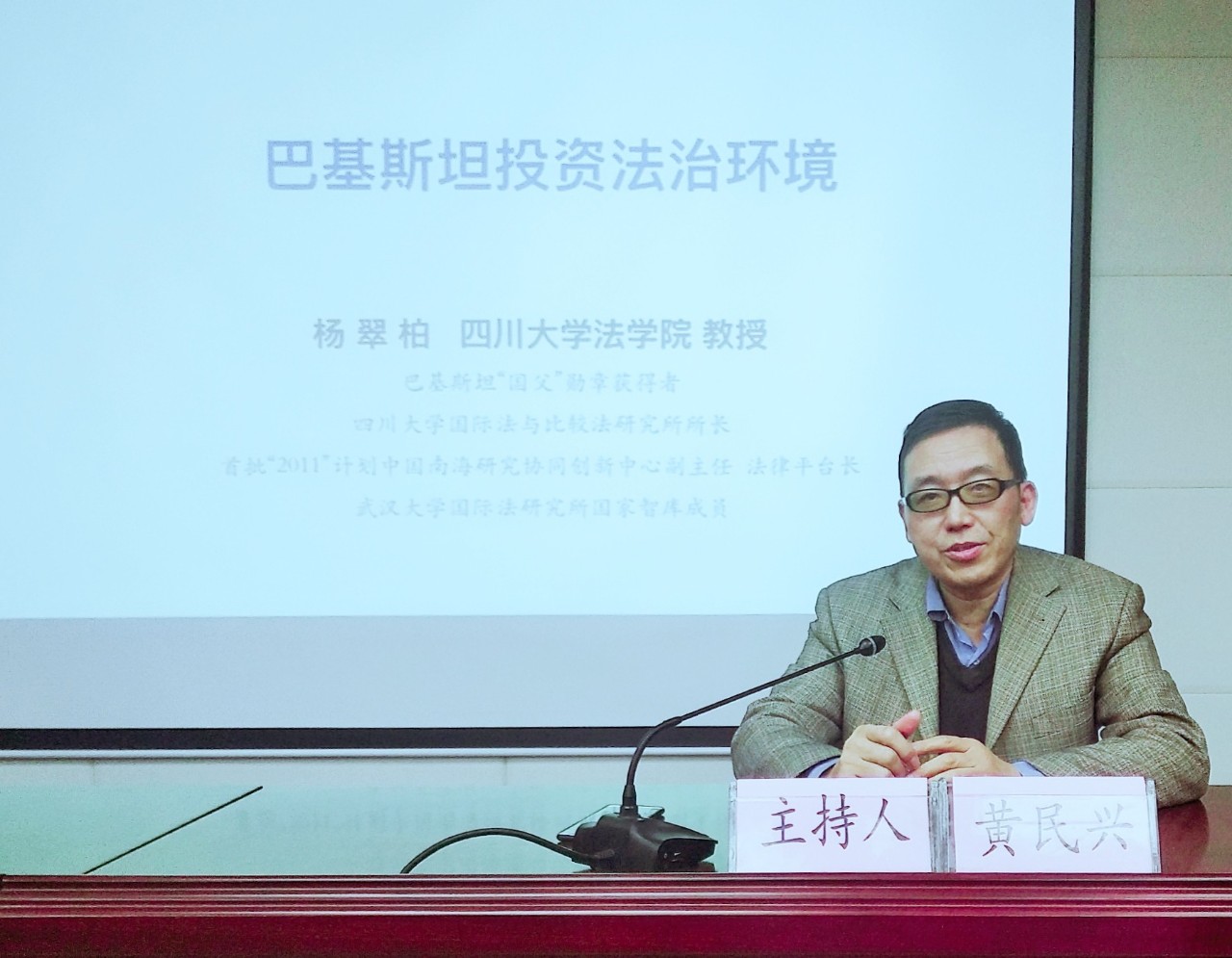 3月24日下午,四川大学法学院杨翠柏教授作了题为“巴基斯坦投资法治环境”的学术报告。报告由yl6809永利集团中东研究所黄民兴教授主持,中东研究所师生30余人参加。