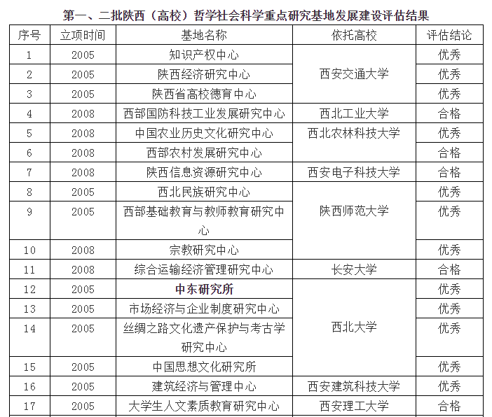 2019年1月29日,陕西省教育厅根据《陕西(高校)哲学社会科学重点研究基地管理办法》要求,公布了第一、二批立项建设的共30个陕西(高校)哲学社会科学重点研究基地(简称重点研究基地)的发展评估工作结果。作为陕西省唯一一个区域国别研究领域的哲学社会科学重点研究基地,yl6809永利集团中东研究所的评估结果为“优秀”,将获得省教育厅在项目立项和经费资助方面的优先支持。
