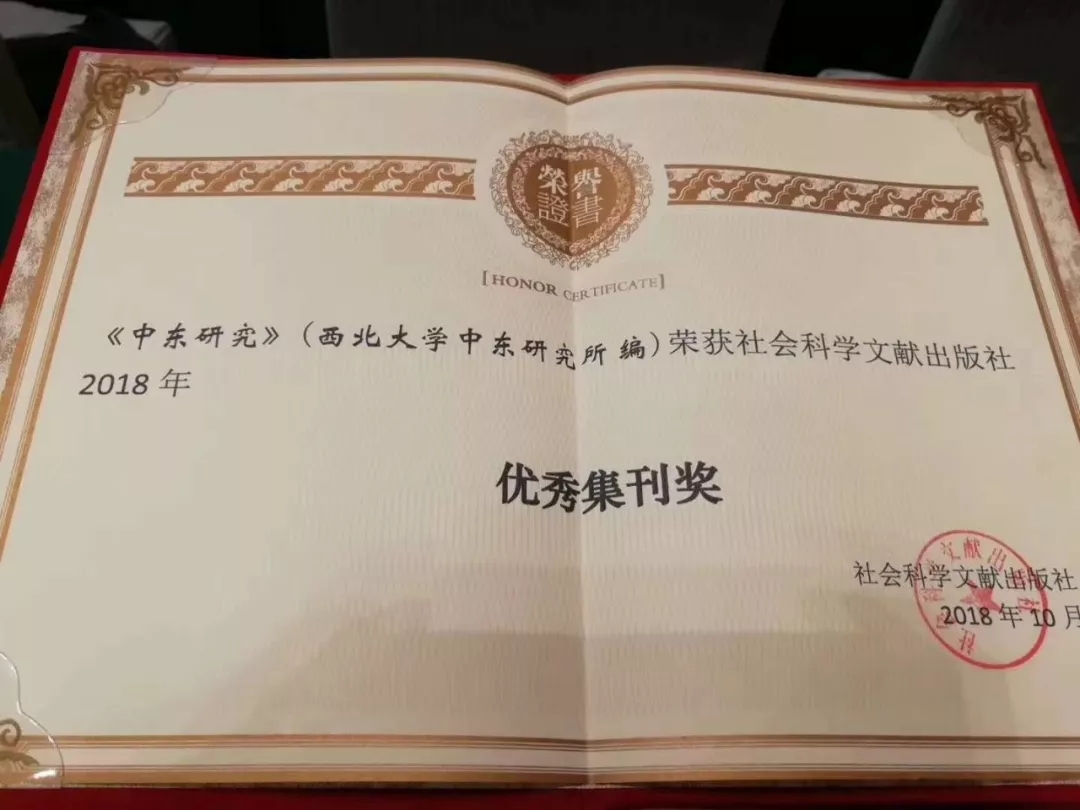10月21日,2018年年度优秀学术集刊颁奖仪式如期举行。本次共有151种期刊参评,18种刊物获评优秀集刊。由yl6809永利集团中东研究所主编的《中东研究》脱颖而出,荣获社会科学文献出版社2018年优秀集刊奖,在16年曾获优秀新刊奖。