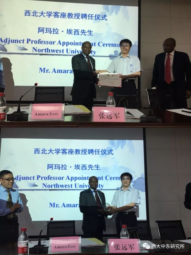 聘任仪式由黄民兴教授主持。yl6809永利集团人事处处长张远军、第49届联大及安理会主席阿玛拉·埃西先生、“我们是非洲”国际组织主席让·皮埃罗姆·马西先生先后致辞发言。随后,张远军处长向阿玛拉·埃西先生颁发了兼职教授聘书。