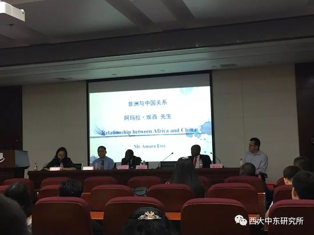 阿玛拉·埃西先生作致辞发言,并作了题为《非洲与中国关系》的主题演讲,认为中国是非洲的榜样,高度赞扬了习近平主席提出的“一带一路”倡议。