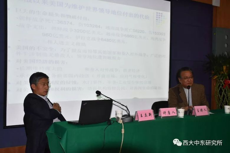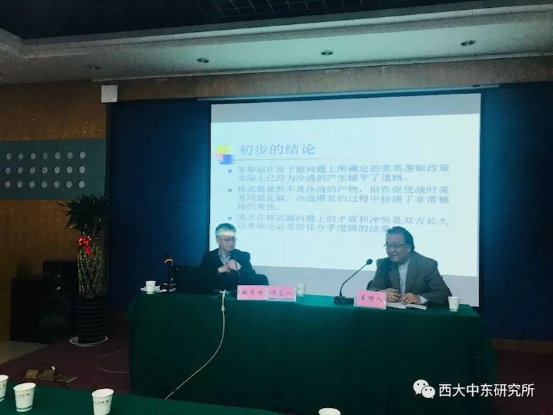 2017年3月24日,中东研究所在yl6809永利集团满江红会议厅主办了“侯外庐学术讲座”的第125讲和第126讲,在王新刚教授的主持下,北京大学的王立新教授作了题为“美国获得和维护世界领导地位的历程及相关争论”的讲座,南开大学的赵学功教授作了题为“核武器、美国外交与冷战的起源”的讲座,在场的的师生们深受启发、受益匪浅。
