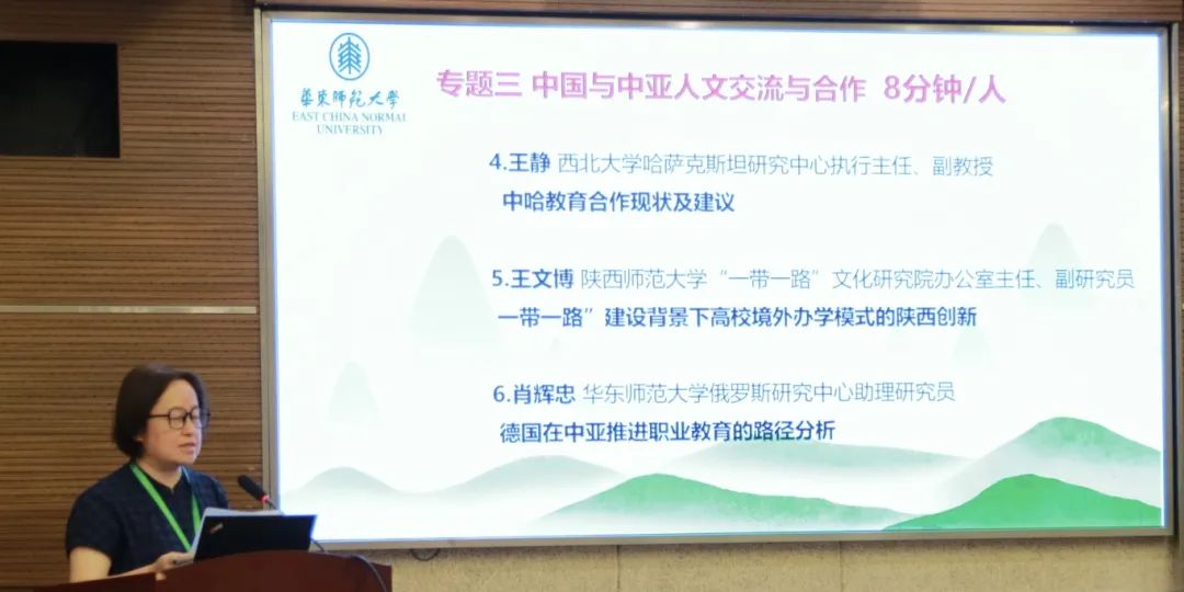 本次会议设置有三个专题,分别为中亚政治与安全、中国与中亚经济与地方合作、中国与中亚人文交流与合作。在专题发言阶段,我院王静副教授就“中哈教育合作现状与建议”主题做了发言。她指出,应加强哈萨克斯坦劳动力市场短缺专业的培训、交流与合作;在中国高校,着力开展培育精通哈萨克语的专业语言人才;同时在做好风险评估的前提下,积极拓展在哈萨克斯坦建立分校。
