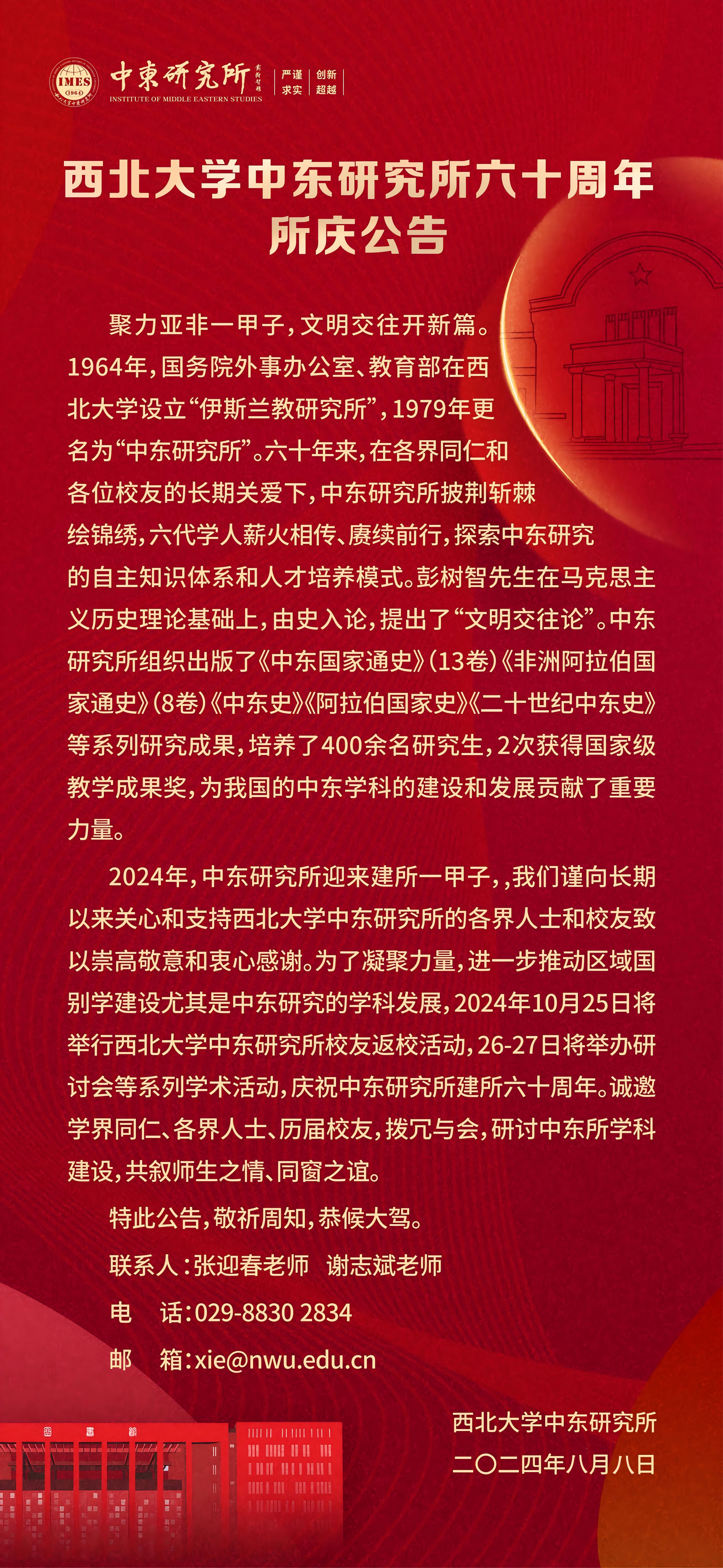 yl6809永利集团中东研究所六十周年所庆将于10月25—27日在西安举行
