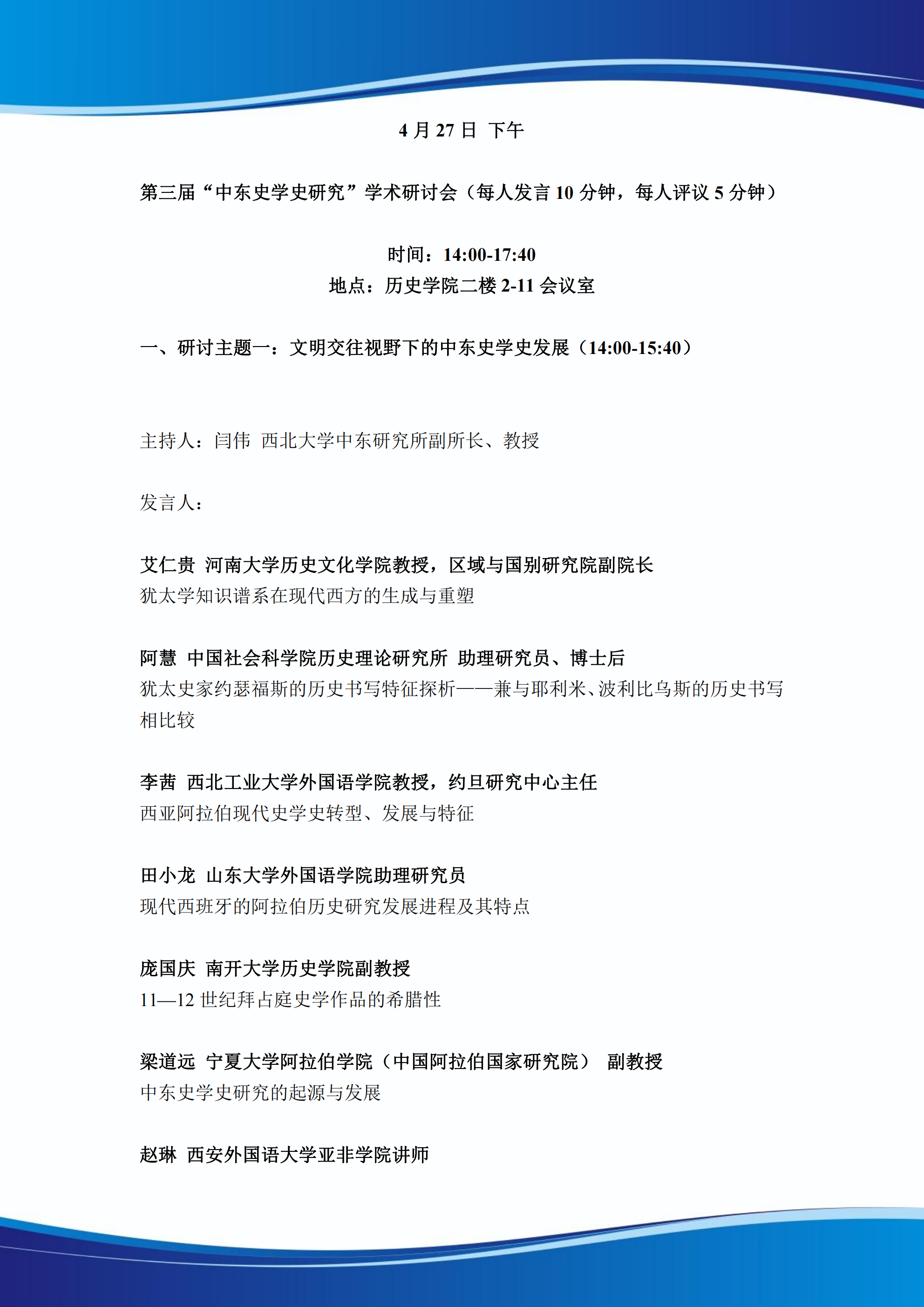 “中东史学通史(五卷本)”开题报告会暨第三届“中东史学史研究”学术研讨会议程