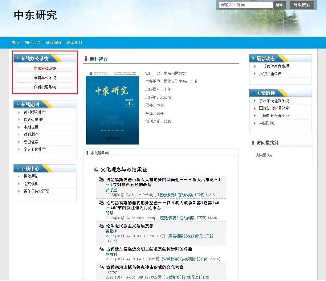 为了提升采编效率,更及时、有效地与作者进行交流,《中东研究》依托中国知网(CNKI)投约稿平台,制作了线上投稿系统,从2023年1月1日起正式启用。凡给本刊投稿的作者,请登录平台,在平台上进行投稿。
