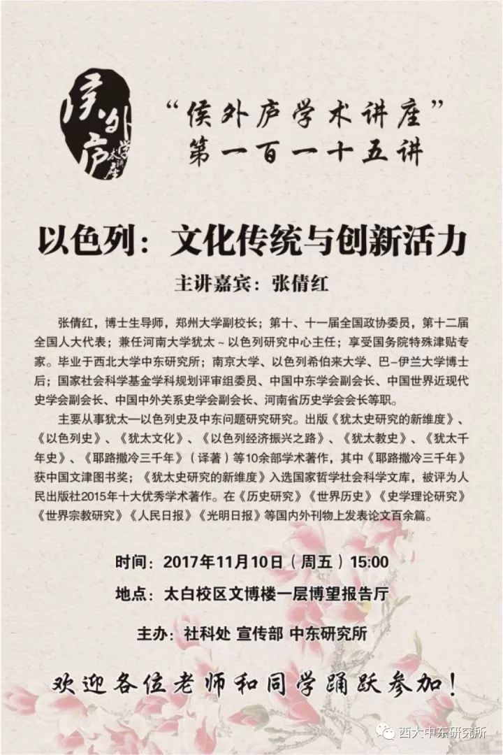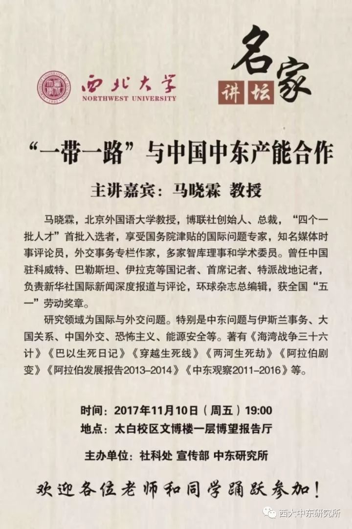 另外本周五中东所还将举办两场专家讲座,具体情况如下图:
