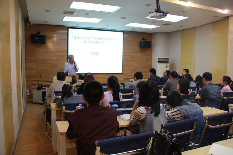 此次讲座围绕着“雷纳尔之问”与美洲“发现”及其后果祸福之争展开,并着重分析了“雷纳尔之问”这一问题。王晓德教授认为通过对大量相关资料的释读可以看出,在启蒙时代,欧洲许多学者是在“天马行空”的想象中构建美洲形象的,美洲成为很多启蒙思想家弘扬欧洲文明优越的“他者”,被想象为一个很难与“文明”相容的“邪恶”大陆。这是启蒙运动时期欧洲精英构建美洲形象的主流,对美洲的“贬低”成为弘扬“理性”时代的一大特征。其中,法国学者纪尧姆-托马·雷纳尔(Guillaume-Thomas Raynal)可谓这方面的代表人物之一。雷纳尔从未去过美洲,但其关于美洲看法产生的影响,却鲜有学者可以比肩。雷纳尔的美洲观主要体现在他主持撰写的多卷本《东西印度欧洲人殖民地和贸易的哲学与政治史》之中。18世纪80年代初,已经在欧美学术界名声大噪的雷纳尔提出一个引人深思的问题,即“美洲的发现对人类是福音还是祸害?如果它是福音,我们靠着什么手段来保持促进其带来的好处?如果它是祸害,我们靠着什么手段来弥补其带来的损毁?”这便是所谓的“雷纳尔之问”。王晓德教授为大家仔细梳理了问题的来由,并且强调了这一问题的重要意义。讲座在同学们的思考中结束。