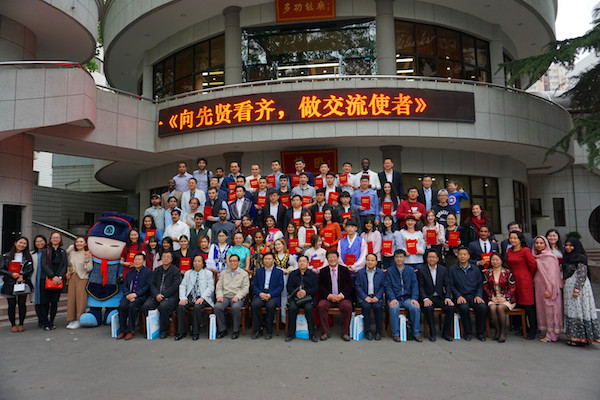 4月15日下午,由我校国际文化交流学院、研究生院、教务处、丝绸之路研究院共同主办的《中外玄奘:对话一带一路 古今马可·波罗:探讨丝路精神》系列活动之一“向先贤看齐 做交流使者”主题论坛在太白校区举行。郭立宏校长出席论坛并致辞,新华社、光明日报等媒体记者,学校相关单位负责人及150余名中外学生参加了论坛。中东所所长黄民兴为本次论坛嘉宾并参与颁奖。