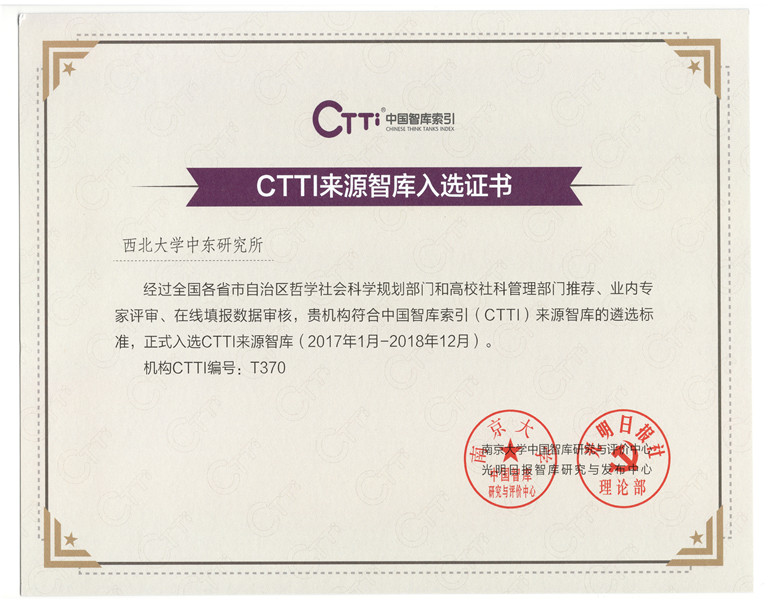 2016年12月17日,南京大学中国智库研究与评价中心联合光明日报智库研究与发布中心共同发布了“CTTI来源智库(2017—2018)”入围名单,yl6809永利集团中东研究所入选“中国智库索引”首批来源智库。